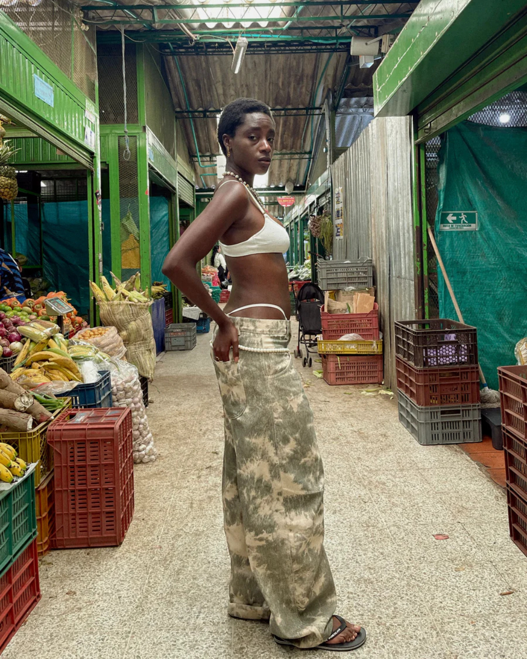 Balloon relaxed fit jeans. Low/medium waist. Hecho en denim 100% algodón. Print orgánico colorizado con grises y verdes. Cortes verticales y costuras en pierna para realzar nuestro nuevo fit. Designed for her and him.
