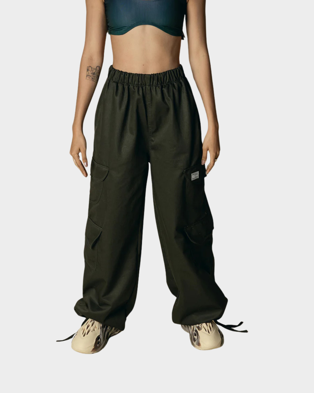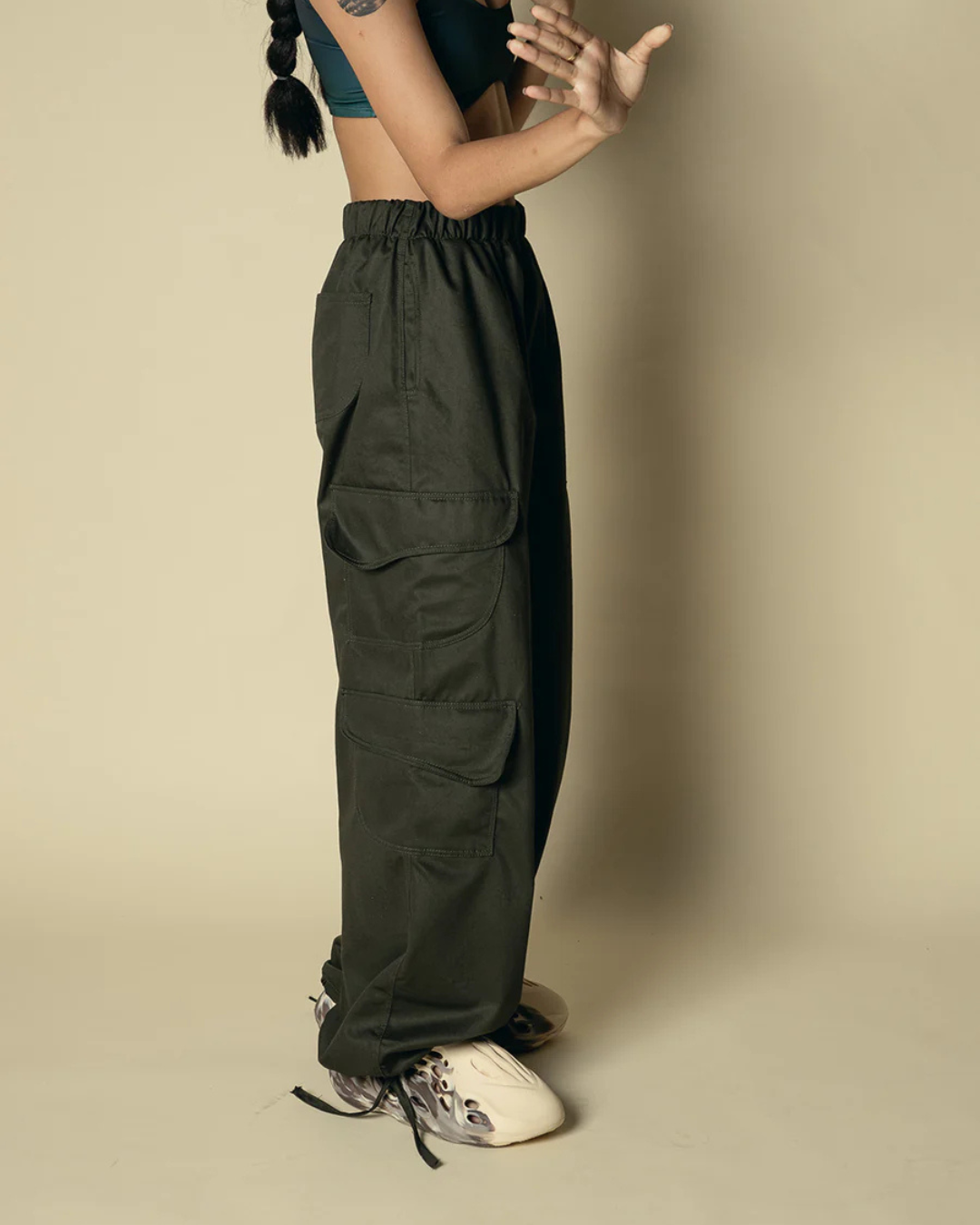 Pantalón fabricado en drill 100% local, fit parachute, pretina enresortada y tirantes reguladores en bajo, cuatro bolsillos signature en piernas, dos bolsillos laterales y posteriores. Marquilla exterior en bolsillo delantero.