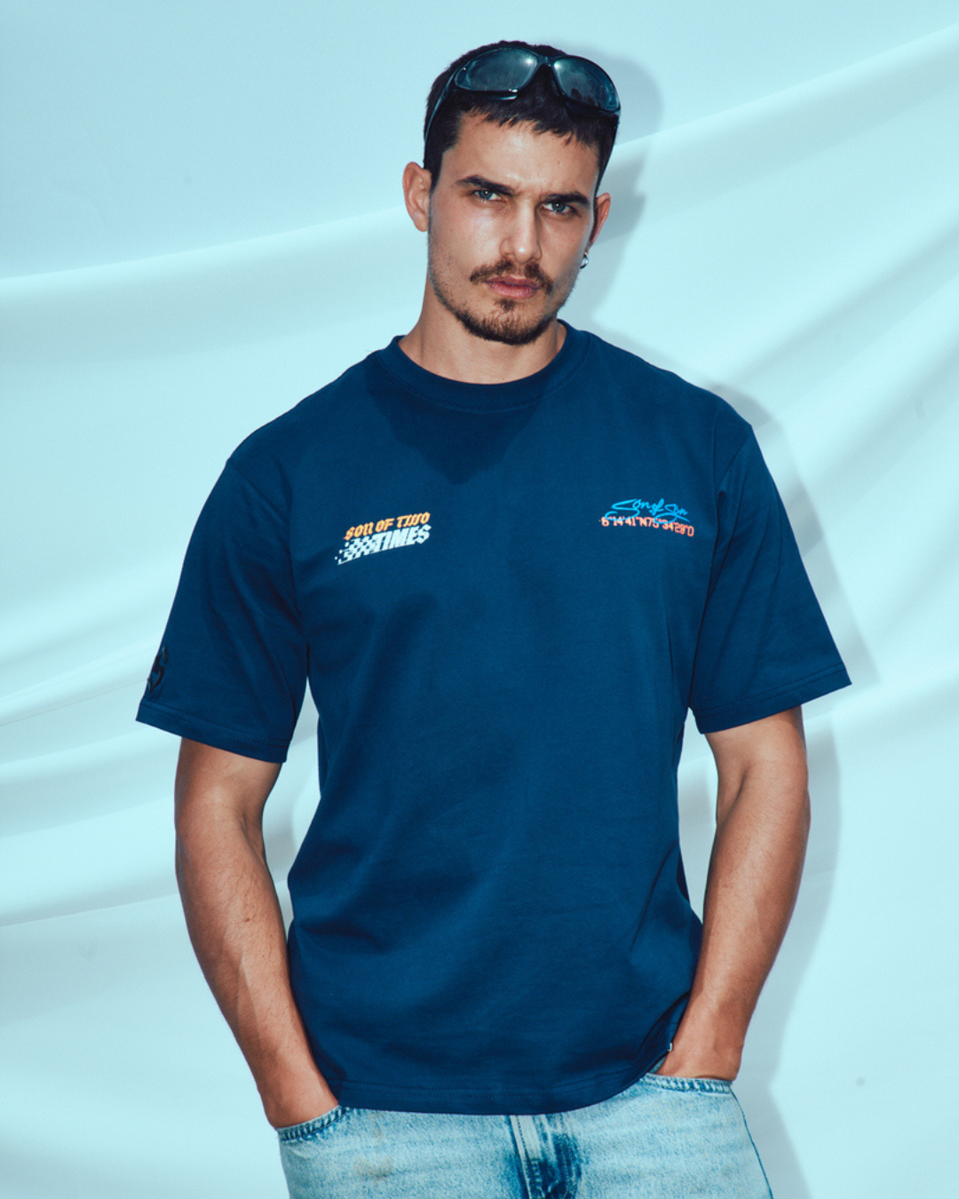 Oversize The Last Race T-shirt OVE022. 280 g de algodón pesado. Camiseta oversize azul oscuro 100% algodón 280g – Son of Son, colección SON OF TWO TIMES
