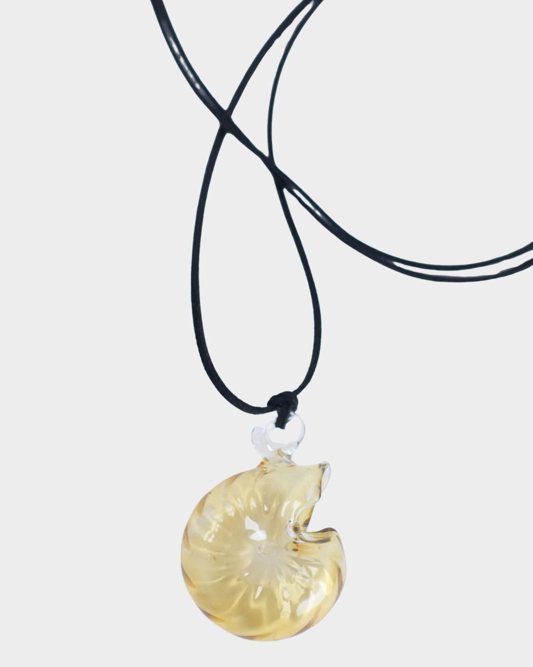 Collar con charm en forma de conchita, hecho de vidrio de borosilicato. La cinta está disponible en varios colores para que puedas elegir la que más te guste.