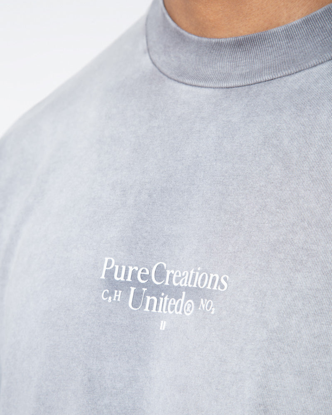 camiseta color negro lavado. Fit oversized. Tela: 100% algodón. Alto gramaje (250 gr). Estampado en el frente y espalda en alta densidad y marquilla tejida en la espalda.