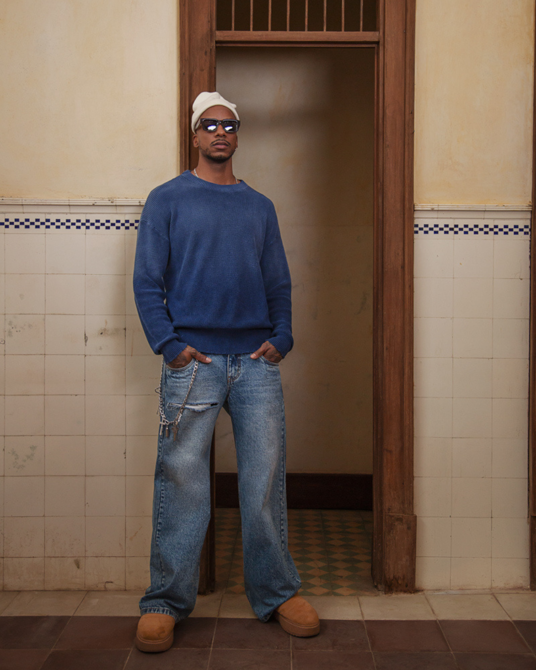 Pullover color azul lavado. Fit: Box Fit. Tela: 100% algodón. Monograma bordado en la manga con marquilla tejida en la espalda.
