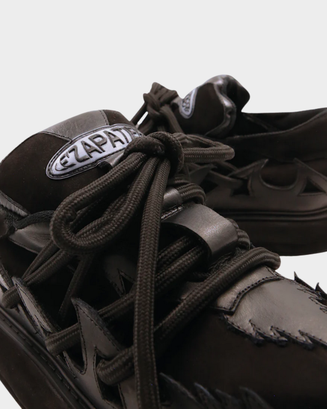 -Lengüeta maxi acolchada con aplique de marca inyectado en caucho blanco y pasadores en cuero Napa negra