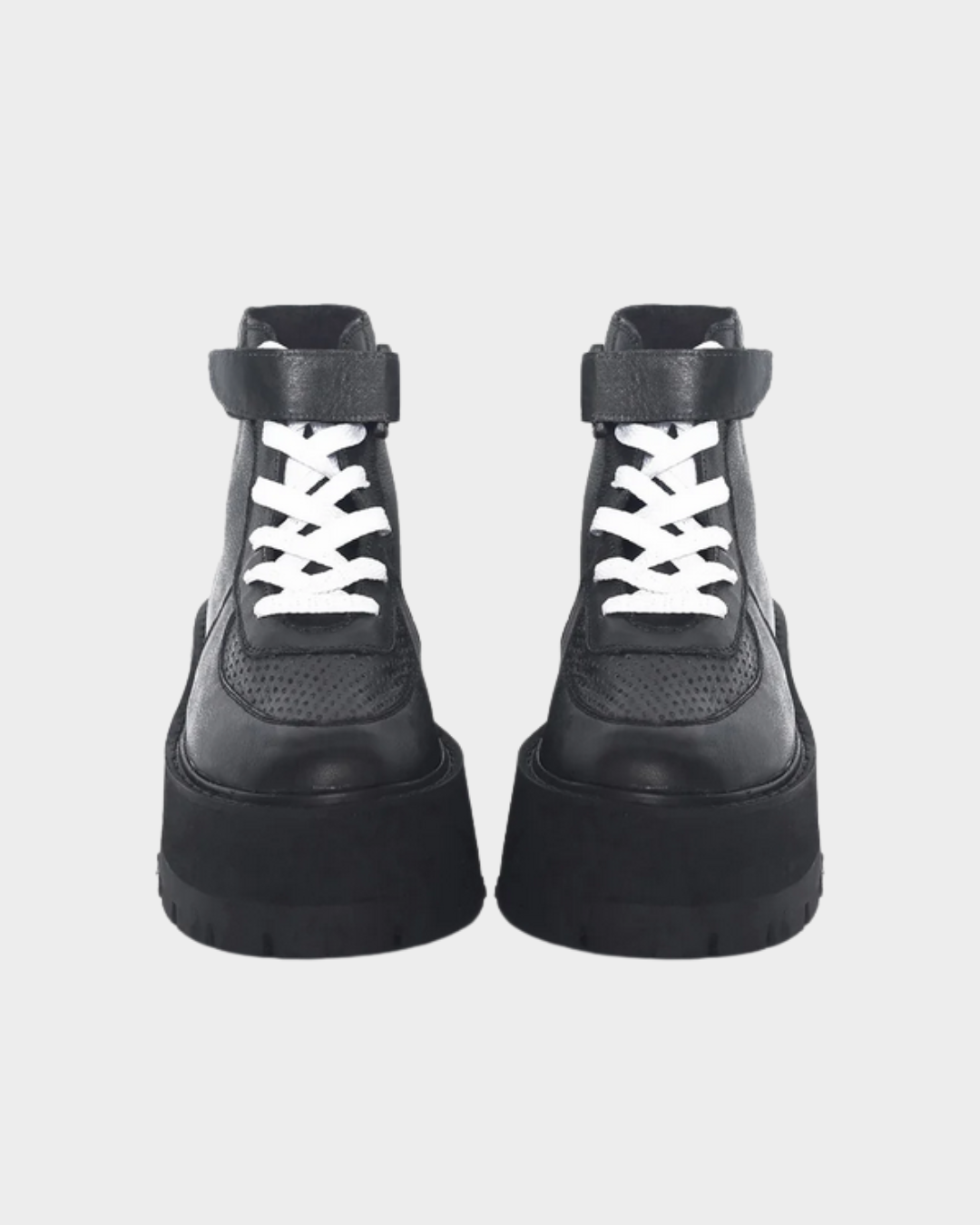 Creadas en cuero en Napa, puntera con respirador, correa con herraje plastico y velcro (para darle un toque de delicadeza). Plataformas de 4 centímetros en espansor y suela dentada en caucho. Time to go out and WORK!