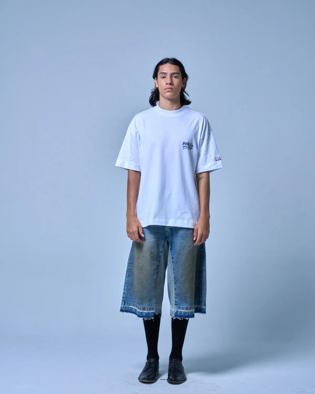 Camiseta de manga corta y cuello redondo en rib en color blanco con fit oversized.