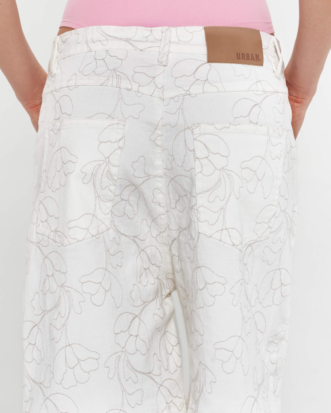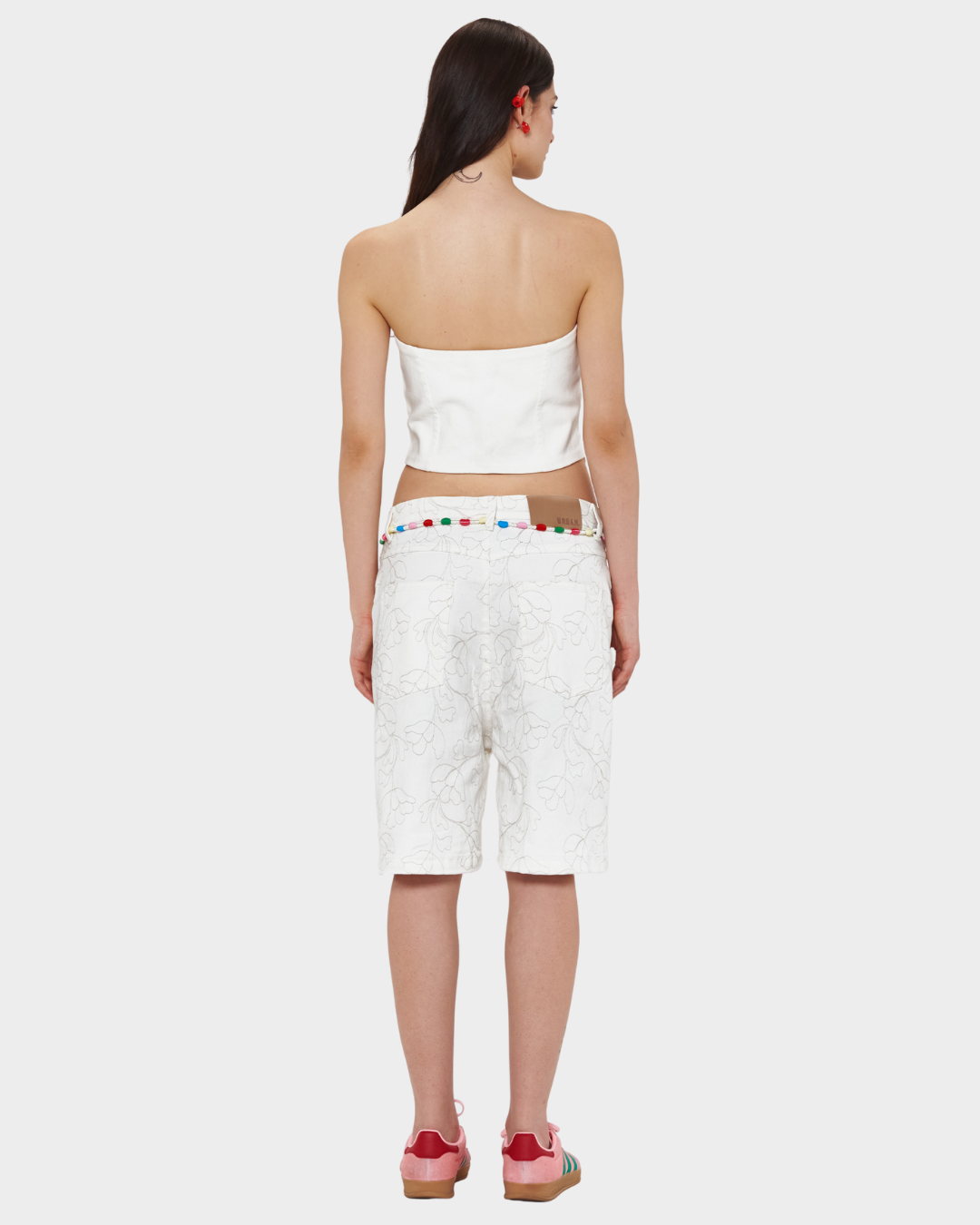 Time for a Jort. Tiro bajo y tela de drill bordada, con bolsillos delanteros en diagonal y traseros en parche.