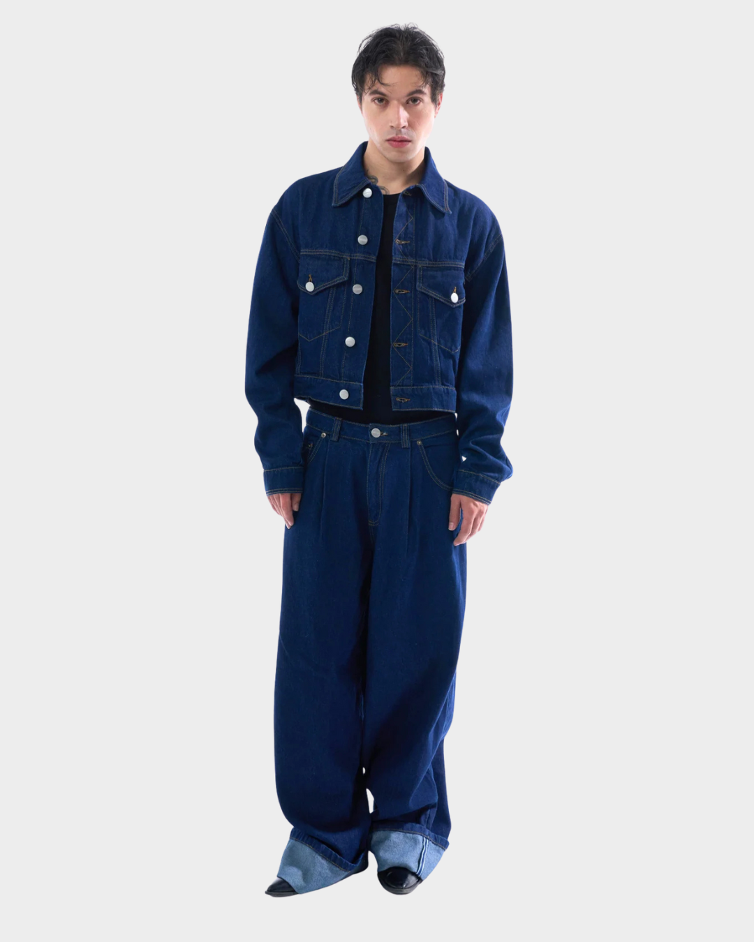 Chaqueta denim de manga larga, con fit boxy y corte ligeramente holgado. Confeccionada en denim de algodón premium y fibra TENCEL™, con bordado 'SINNERS DENIM DEPT.' en la parte posterior. Además, la chaqueta pasa por un proceso de fijado especial que ayuda a evitar manchas y la transferencia de color, prolongando su apariencia original y protegiendo otras prendas al usarlo.