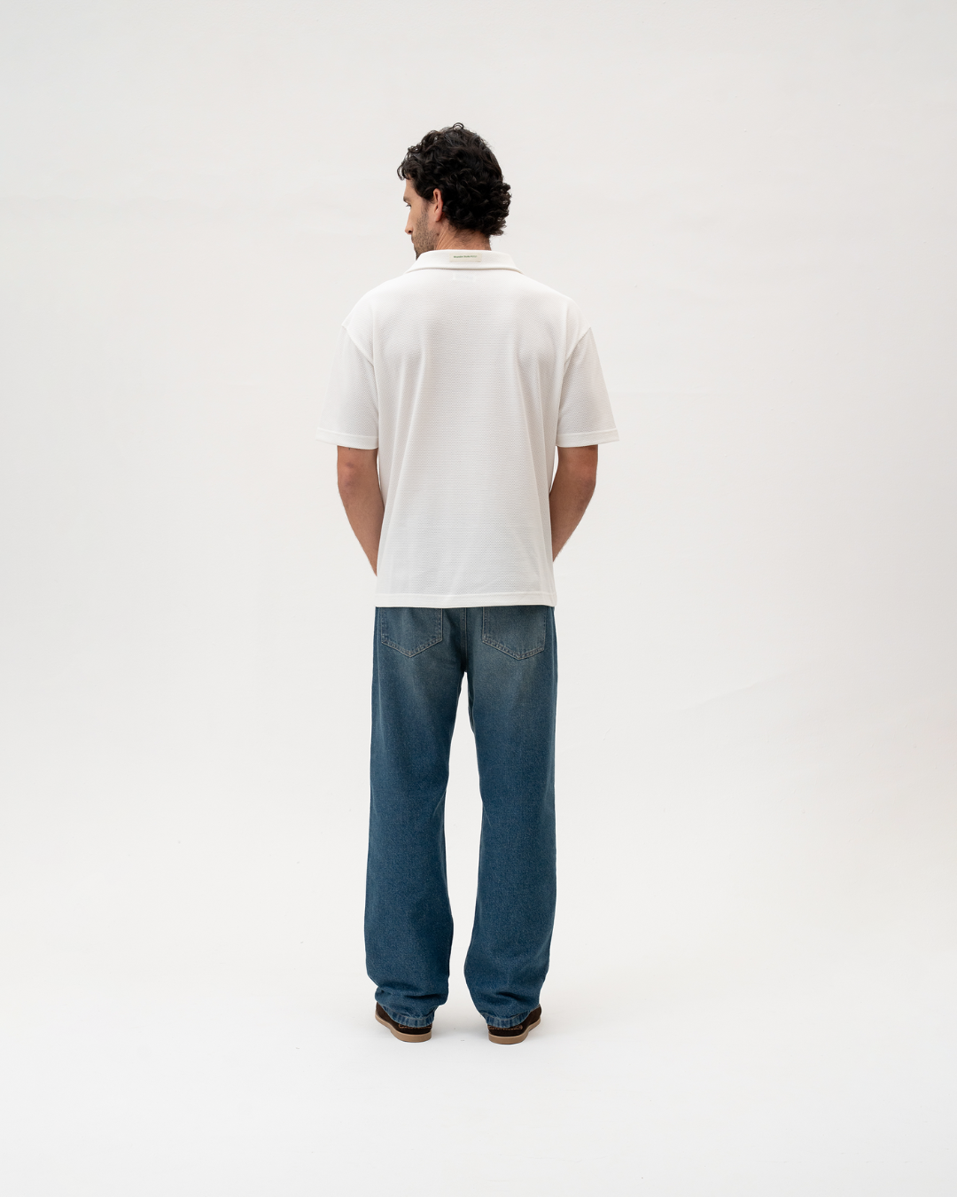 Camisa fit semioversized, 100% algodón de alto gramaje con detalle bordado a tono en el delantero a la altura del codo y detalle de marquilla en cuello poster.
