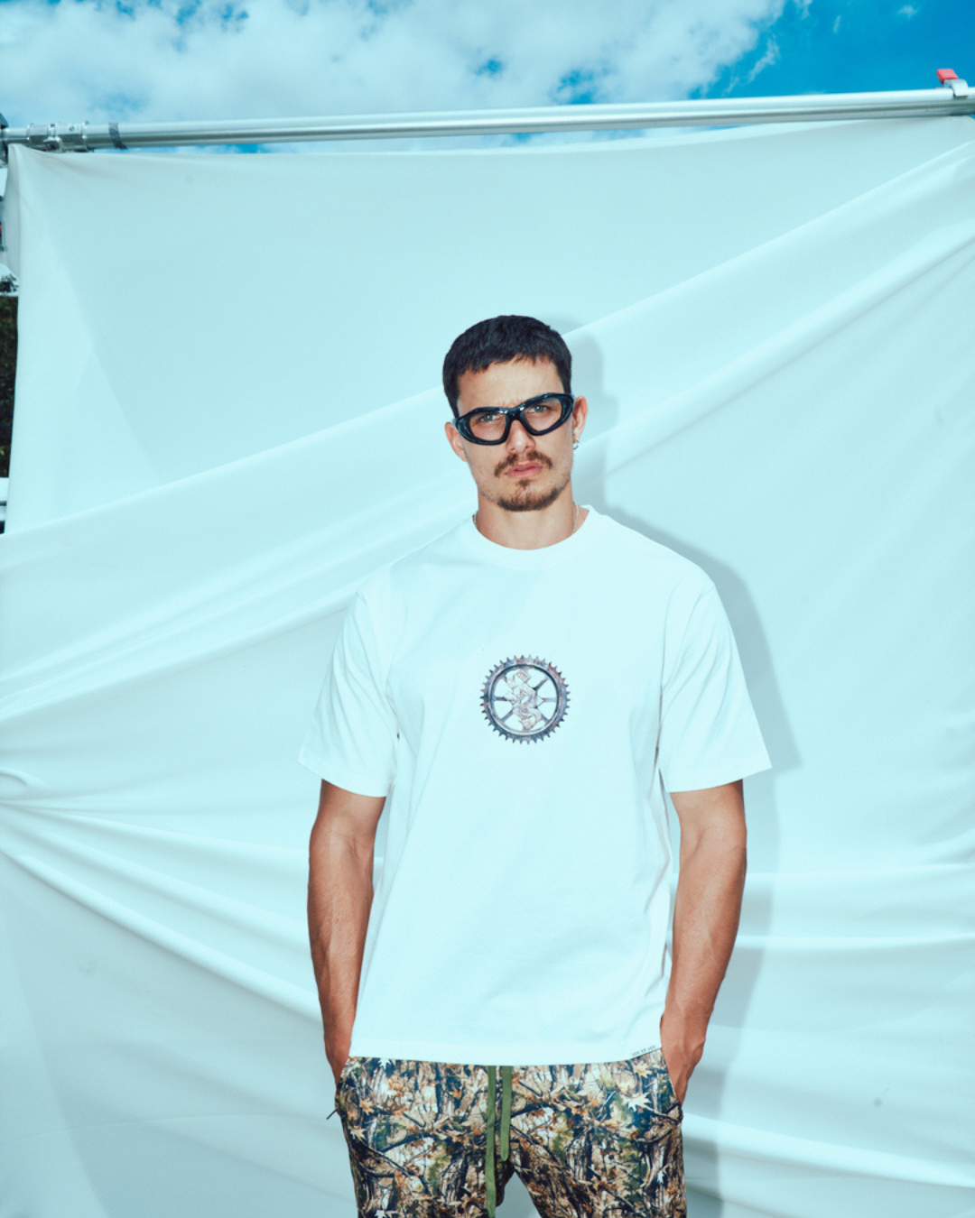 fit oversize aporta comodidad y presencia. El diseño en la espalda resalta con un contraste metálico y desgastado que evoca la rudeza de la pista y el paso del tiempo. Perfecta para combinar con prendas oscuras como nuestros cargo negro o pantaloneta negra SON OF TWO TIMES, logrando un equilibrio fuerte y urbano.